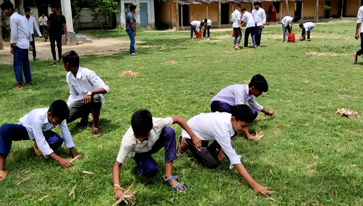 মোমিনপুর উচ্চ বিদ্যালয় সকলে মিলে পরিষ্কার পরিচ্ছন্ন করার সময়।