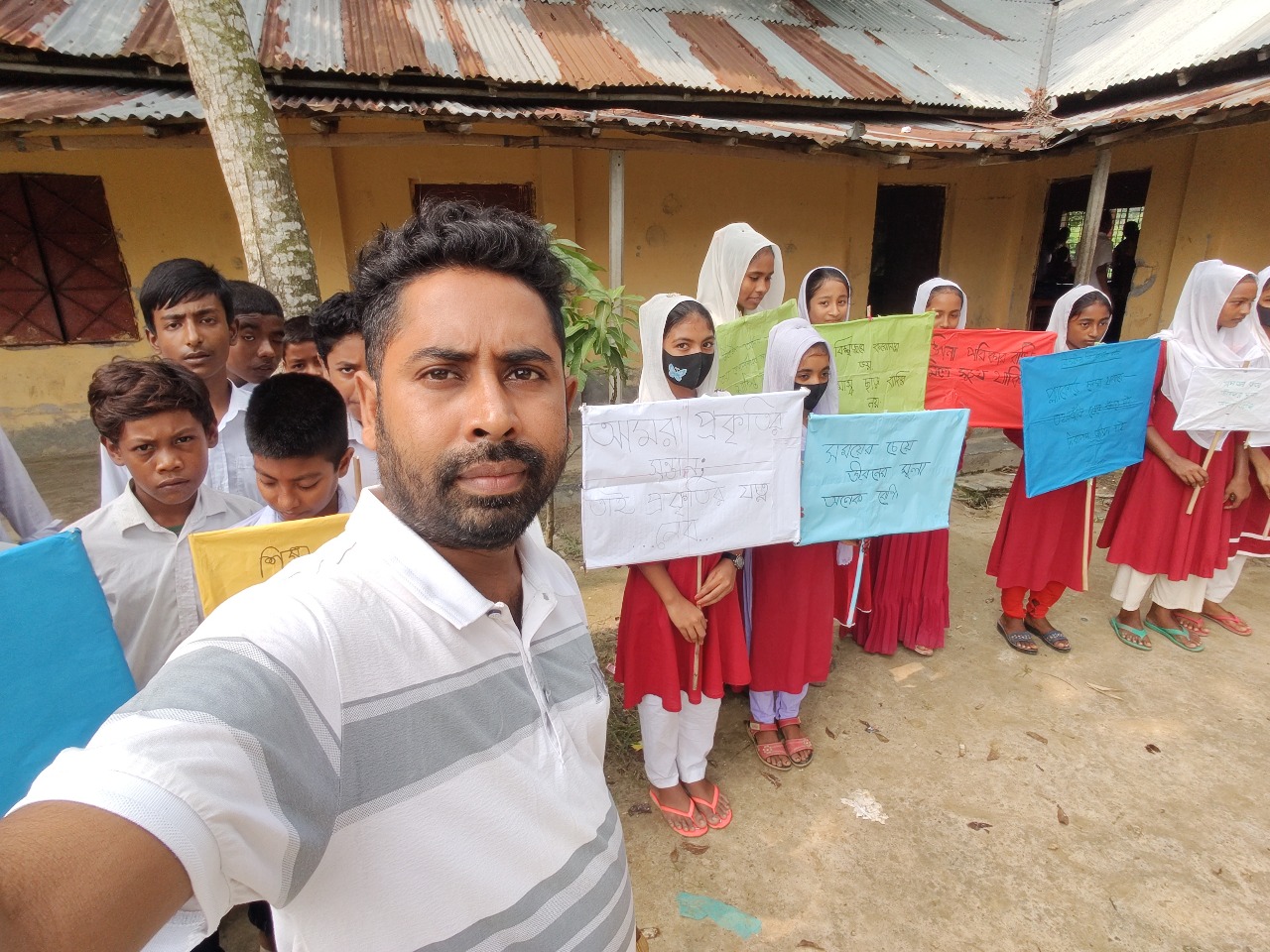 মোমিনপুর উচ্চ বিদ্যালয়ে পরিবেশের সচেতনতার জন্য মানববন্ধন।
